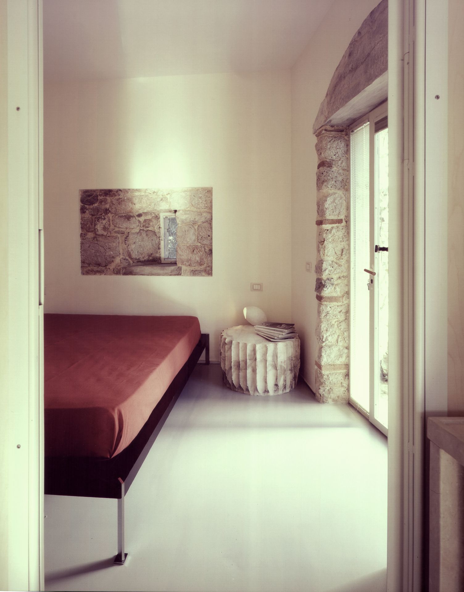 Gli interni e gli arredi, anche essi caratterizzati da una stringata essenzialità di design, dialogano con i materiali che costituivano la texture originale della rocca.